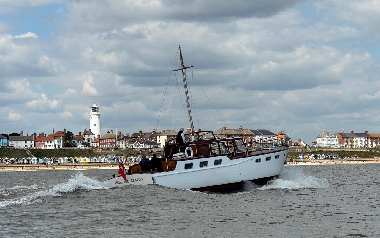 After extensive works at Harbour Marine Services the elegant Highland Beauty out for sea trials and handling the gentle swell off Southwold with total ease.