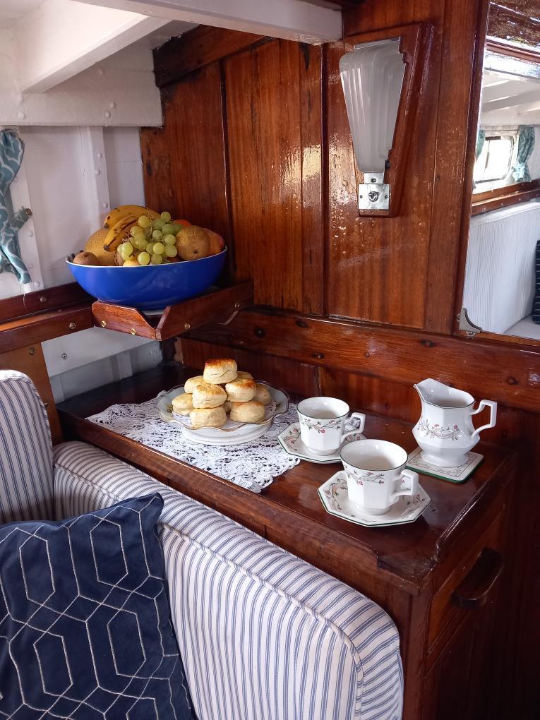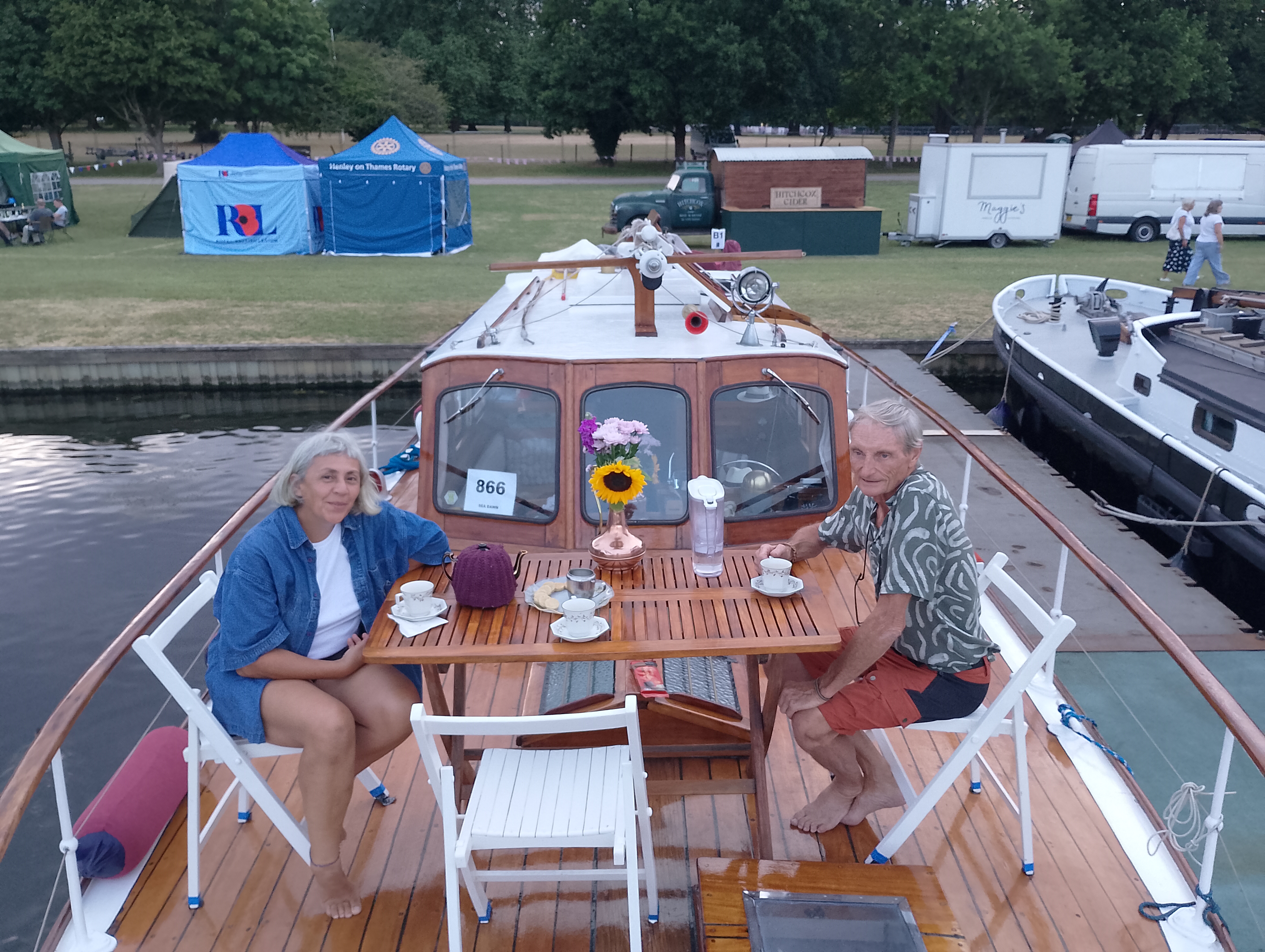 It was a very busy weekend, and the public occupied the river banks. Wanderers were invited aboard, them wishing to know more about Rampart boats. We spoke about the structure and honoured the builder by talking history. It brought much joy to peoples face to have such a personal experience of the classic vessel and Sea Dawn even had a mention over the tannoy for serving cream teas on the deck.